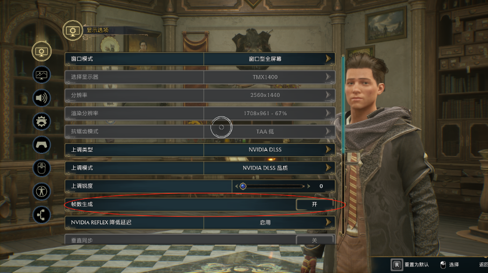 在游戏中,选择显示选项,然后发现帧数生成可以上调,现在你可以不用40显卡就可以开启。