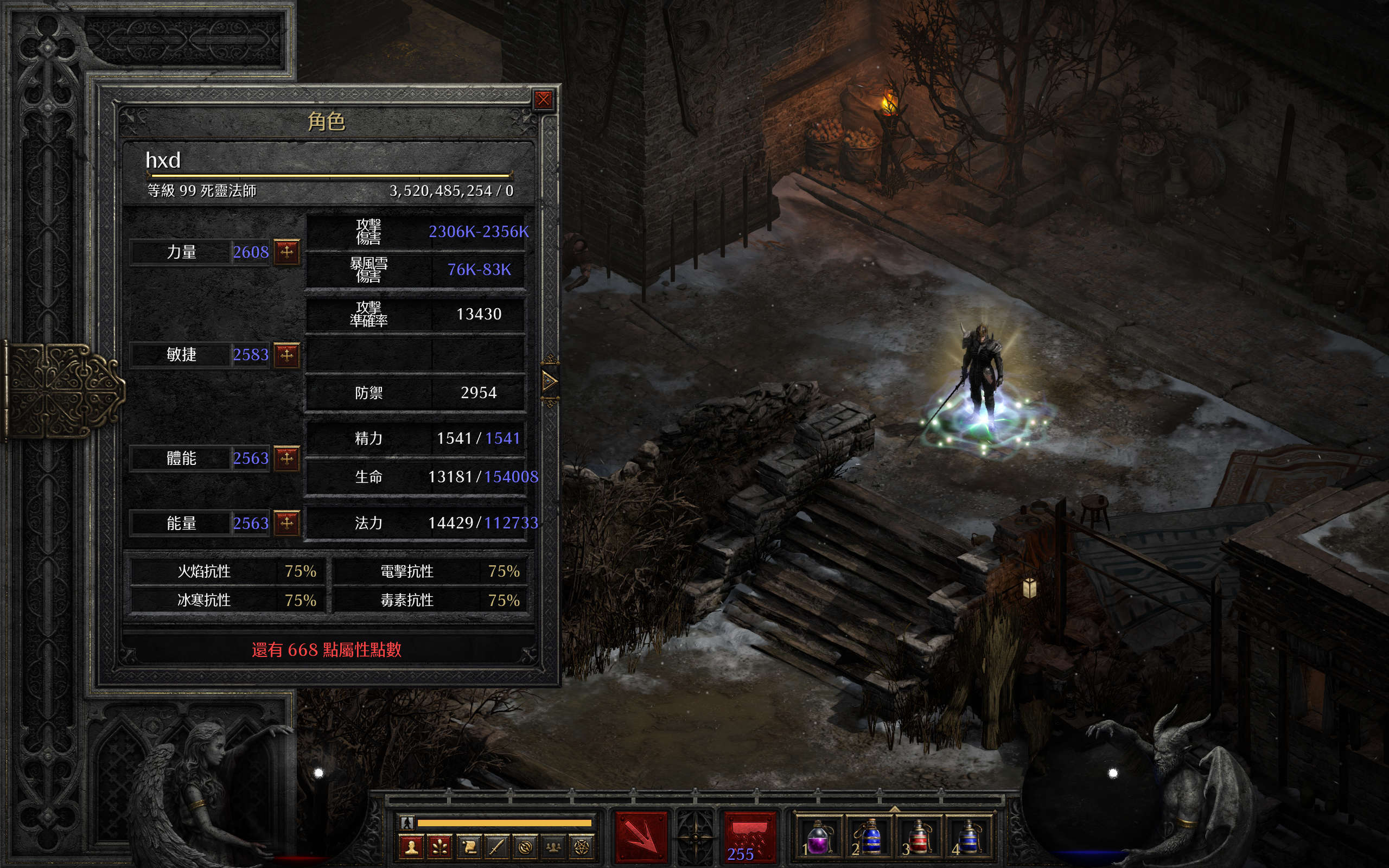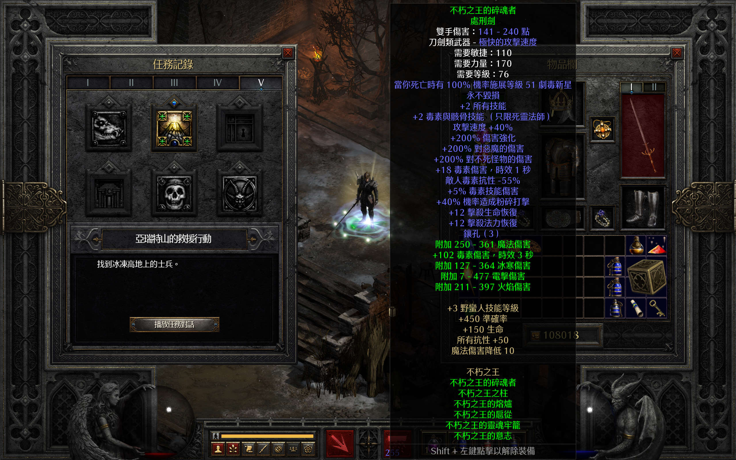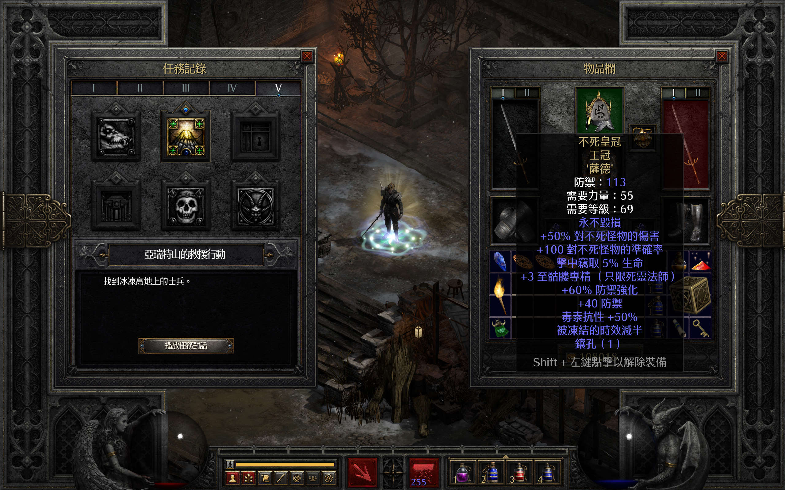 使用后就可以获得一个装备不朽之王套装,可无限回血回蓝的死灵法师存档