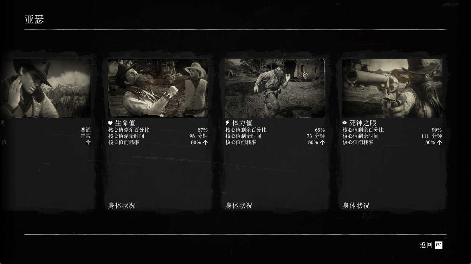2、支线任务 恐龙骨系列任务完事、香烟卡系列任务都完事、石雕系列任务完成、捕梦网系列任务完成 小动物标本任务一半(动物我已经打完了,任务提示夫人去度假了,接下来的进度只能推到约翰完结就可以了)