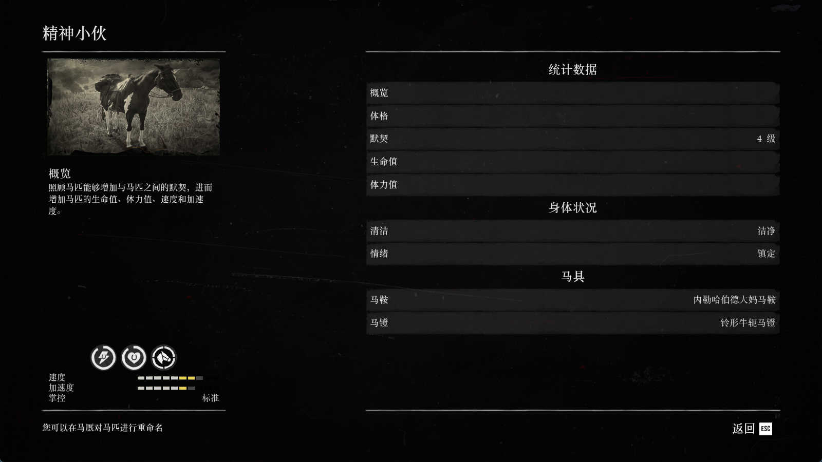 毕竟的第二章初始嘛,何西亚狩猎任务做完才能解锁马厩 所以马匹方面的配置上在这个存档上不上这么的亮眼