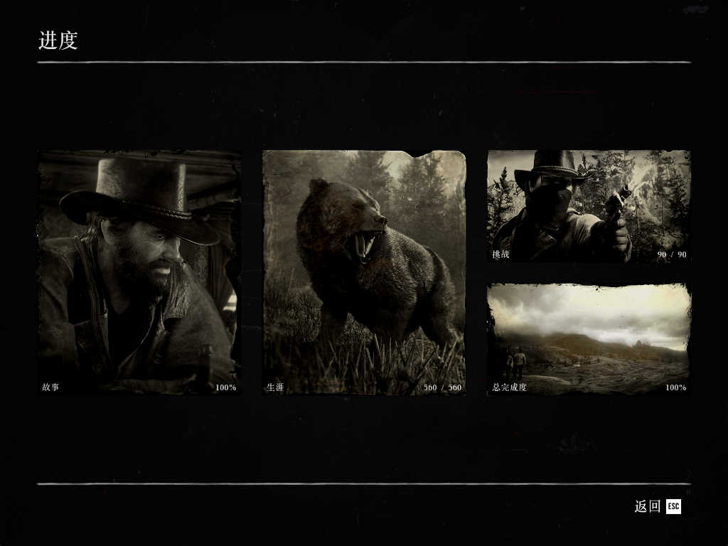 买齐了地图上标记的所有商店(杂货店,黑市,枪店,鱼饵店,医馆,屠夫铺,马厩,卖报人)贩售的所有物品。